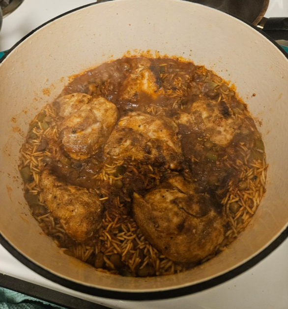 오늘 사용한 레시피는: https://www.ambitiouskitchen.com/puerto-rican-chicken-and-rice-arroz-con-pollo/